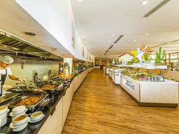 3) продуманная организация питания. Есть можно круглосуточно. Завтрак как бы с 7:30 до 10:00, но он тут же перезодит в поздний завтрак и тебя не выгоняют. До 11 люди подходят спокойно, ассортимент не снижается. За счет этого нет столпотворений. За ужином и обедом тоже всегда есть места. Раздельные зоны для курящих и нет.