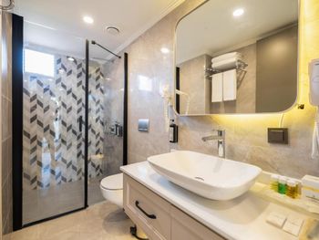 Для отеля 5* UAI совсем не дотягивает. В номерах не было не только халата и тапочек, но даже элементарных геля для душа, кондиционера (сказали, что это не входит в концепцию отеля🤦♀️). И на что совсем уж не рассчитывали,, так это отравиться едой, я подчеркиваю - едой, так как мы с мужем не пьем. И никаких извинений, возмещения морального ущерба, всё таки люди потеряли 2 дня, т.к.сначала отравился супруг, потом я, не последовало, если не считать, что двум отравившимся предложили поужинать в а\'ля карт ресторане🤦♀️ За то, когда наступил день отъезда начали названивать ещë 12 не было! Такого не припомню, нигде, ни в одном отеле так беспардонно не выкидывали из номера. . В отеле нет интернета! Чтобы его поймать, надо было или сидеть на ресепшн, или нарезать круги вокруг ресепшн. Ну, и по мелочи - на пляже ходят какие-то торговцы. А, ещё - на территории находятся три отеля Vonresort и почему-то из этих отелей люди не могут выпить даже кофе в одном из двух оставшихся. Идешь с пляжа, проходишь мимо кафешки, хочешь выпить кофейку, а тебе говорят - покажите браслет, ой мы из вашего отеля не обслуживаем,хотя у всех из трёх отелей на браслетах написано Vonresort hotels. Написала, как есть. В некоторые отели хочется вернуться, но не в этот.