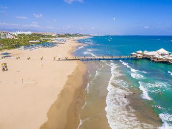 Пляж чистый, его постоянно убирают. Сход в воду пологий, камней нет, волны не было ни разу.