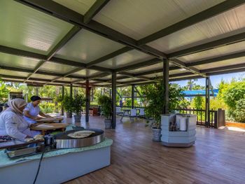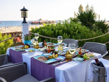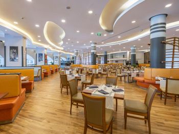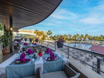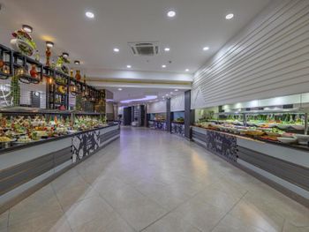В главном ресторане отеля сервируют изысканные блюда в формате «шведского стола», а в ресторане с обслуживанием по меню подают блюда итальянской и турецкой кухни, а также блюда из морепродуктов. На территории отеля работают 7 баров, где можно заказать разнообразные алкогольные и безалкогольные напитки.