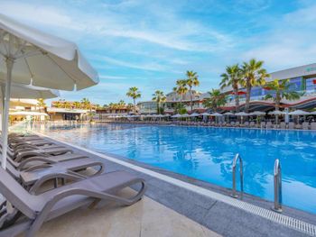 Этот отель расположен на побережье Средиземного моря. К услугам гостей собственный длинный песчаный пляж, 2 открытых бассейна, спа-центр и аквапарк с 3 бассейнами и 11 водными горками. Гостям предоставляется бесплатный Wi-Fi.