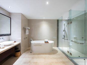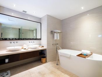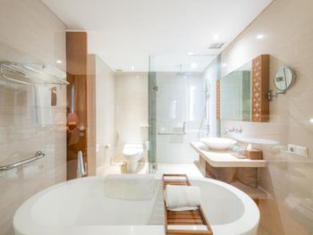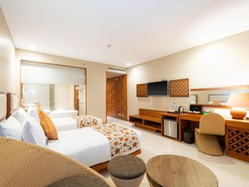 В распоряжении гостей VOUK Hotel and Suites Nusa Dua Bali — гостиная зона и собственная ванная комната с душем, бесплатными туалетно-косметическими принадлежностями и феном. Также среди удобств есть кондиционер, телевизор с плоским экраном со спутниковыми каналами и сейф. В собственной ванной комнате есть тапочки. В распоряжении всех гостей письменный стол и чайник.
