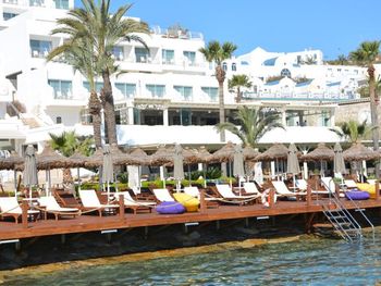 Открытый бассейн окружают пальмы и зонтики. В пляжном баре и баре у бассейна можно заказать напитки. Также в распоряжении гостей курортного отеля хорошо оборудованный спа-центр.