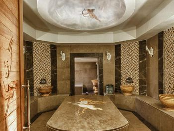 Заказ по QR коду работал, но его не приносили. Так же не выдали халаты, хотя у остальных были :( Хаммам не работал, хотя обещан был. Уборка не ежедневная, раз в 2 дня. Так же если вы из России, то вечерние выступления вам не понравятся, они все на турецком