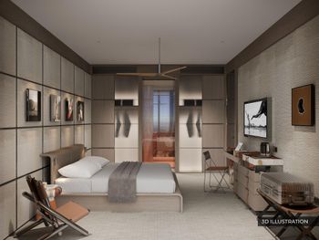 Номер: 45 кв.м, двуспальная кровать, софа, ванная комната (душ), балкон, вид на окрестности, макс.3 чел.