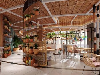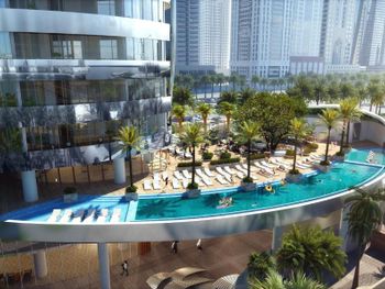 Очень необычный дизайн сервис на супер скам уровне много вариантов развлечений, даже есть аквапарк маленький, по сути это большой Резорт так скажем где располагаются разные отели от группы Marriott и разные рестораны, много разных развлекательных зон, классно как и с детьми так и вдвоём парой, потому что есть зоны только для взрослых а также очень много развлечений для тех кто с детьми.