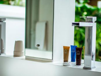 Светлые номера с кафельным полом оформлены в белых и серебристых тонах. В числе удобств — кондиционер, мини-бар и принадлежности для глажки. Собственная ванная комната с тропическим душем укомплектована феном, халатами и бесплатными туалетно-косметическими принадлежностями.