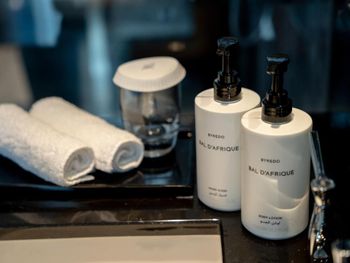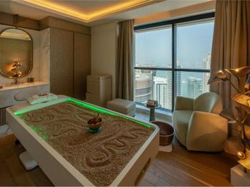 Гости отеля с 5 звездами Waldorf Astoria Doha West Bay могут воспользоваться крытым бассейном, сауной и гидромассажной ванной.