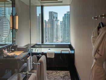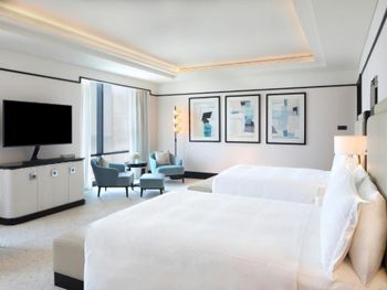 В номерах Waldorf Astoria Doha West Bay установлен кондиционер, сейф и телевизор с плоским экраном. Среди прочих удобств — письменный стол, а также собственная ванная комната с душем. В собственной ванной комнате есть ванна, бесплатные туалетно-косметические принадлежности и фен.