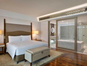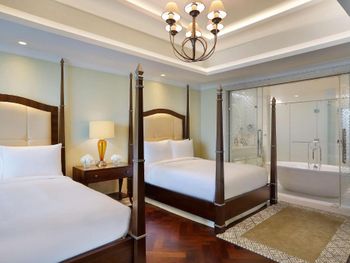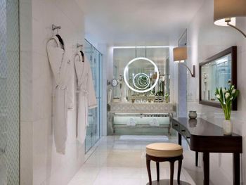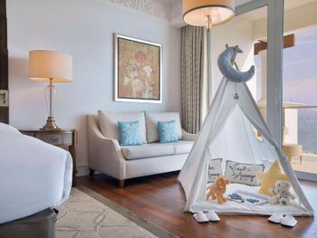 Во всех просторных номерах с современным дизайном установлены фирменные кровати Waldorf Astoria. В распоряжении гостей большой балкон с потрясающим видом на остров Пальма Джумейра или городской пейзаж Дубая. В каждом номере есть удобная гостиная зона, рабочее место и 42-дюймовый телевизор с плоским экраном. В ванных комнатах, облицованных белым мрамором, имеется большая ванна с телевизором, душевой уголок и роскошные туалетно-косметические принадлежности.