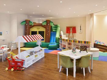 Есть детский клуб, много игрушек, проводят мероприятия для детей на англ.