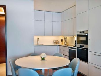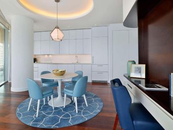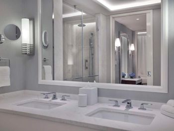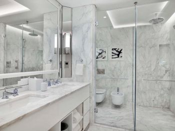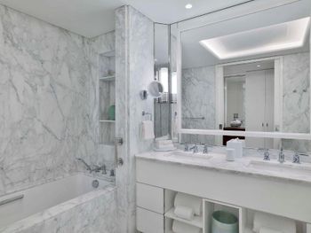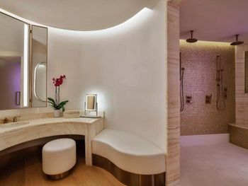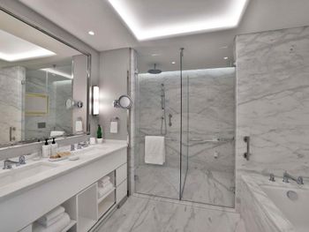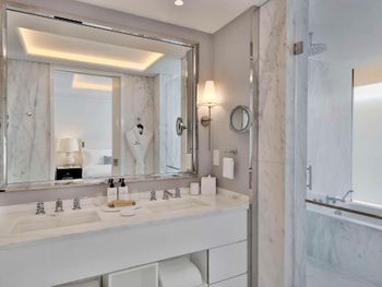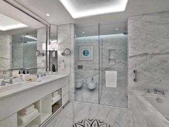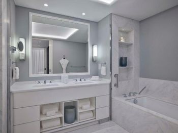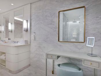 At the resort each room includes air conditioning, a private balcony, a seating area, a flat-screen TV with cable channels, a safety deposit box and a private bathroom with a bidet, bathrobes and slippers. Every room is equipped with a kettle, while selected rooms are fitted with a kitchen with a dishwasher, a microwave and an oven. At Waldorf Astoria Doha Lusail every room includes bed linen and towels.