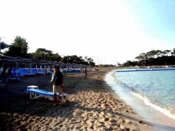 Пляжа своего нет. А так-как с общественными пляжами в Кемере беда, то либо 10 баксов в день за лежак, либо осваиваем картографические сервисы и ищем дикие пляжи. Они есть. Кто хочет, тот найдёт. Но это прибавит ещё 3-4 км в день.