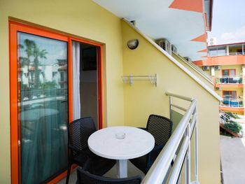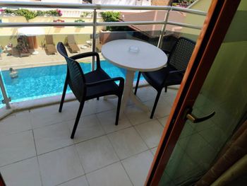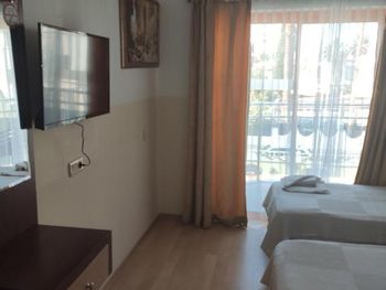 Вполне нормальный номер, минимальный набор удобств есть - тв, холодильник рабочий, тумбочки, зеркало, шкаф, есть одеяло на случай прохлады. Уютный балкон со столиком и стульями.