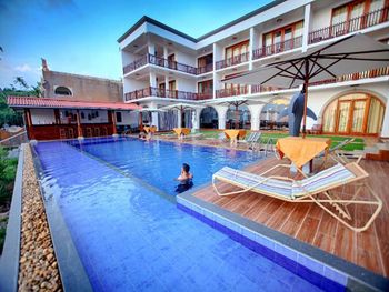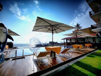 Для Унаватуны неплохой вариант размещения с отличным видом на океан. Из-за скал купаться там нельзя, но близко расположены другие пляжи. В гостинице неплохой бассейн и просторные номера с понрамными окнами и балконами.