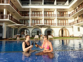 Для Унаватуны неплохой вариант размещения с отличным видом на океан. Из-за скал купаться там нельзя, но близко расположены другие пляжи. В гостинице неплохой бассейн и просторные номера с понрамными окнами и балконами.
