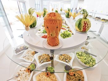 На территории отеля работает главный ресторан, три ресторана с обслуживанием по меню (итальянский, турецкий и гриль), лобби-бар, бары у бассейна и на пляже, кондитерская, лаунж-бар Vineyard, бар Laguna.