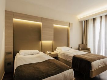 Удобства в номерах: Сейф, Кондиционер, Обслуживание в номерах, Терраса, Фен, Телевизор, Мини-бар, Телефон, Душ