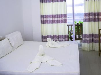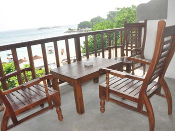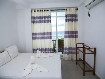 Вид из окна действительно шикарный, просыпаешься и сразу видишь океан. Кровать огромная и очень удобная. Находится в начале пляжа около самого большого отеля Унаватуны, за счет этого волн почти нет. В номере было чисто, с водой тоже не было проблем.
