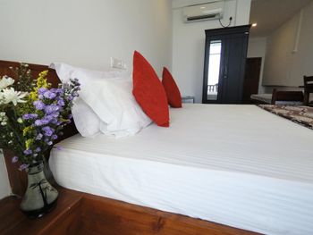 Номер дали не тот. Бронировал улучшенный, а в итоге из всех фото не совпала ни одна, фото соответствовали категории Делюкс, что был дешевле на 10 долларов в сутки. На вопрос почему номер не тот, сказали что номер на фото занят, наслаждайся этим. Он конечно был не плох, но по факту я отдал 20 лишних долларов просто так, в то время как в моем номере кто-то спокойно жил. Рядом с отелем находится храм и если вам повезло попасть на праздничный день, то вы будете слушать громкие песни с 8 утра и до обеда. Завтрак заявлен с 8 утра до 10, но раньше 9 у меня его так и не вышло получить т.к. повара не было на месте. В номере есть холодильник, но он отключается когда вытаскиваешь карточку, так и не понял зачем мне холодильник, который работает только если я в номере, оставить в нем ничего не получится. Вай фай хорошо работает только около ресепшена, до верхних этажей не достает вообще. По факту, отель хорош только видом, без вида за эти деньги можно найти гораздо лучше