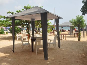 Шикарный вид с балкона. Расположение одно из лучших на пляже. Своя небольшая территория, с лежаками и деревьями , создающими тень. ( полотенца выдают бесплатно, по требованию) Просторный номер. Хороший кондиционер, горячая вода. Холодильник в номере.