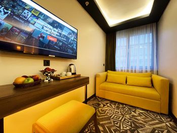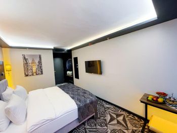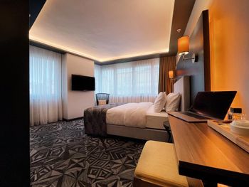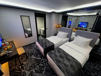 Прекрасный отзывчивый персонал, были очень приветливы, старались помочь. При бронировании мы запросили номер с двумя отдельными кроватями, но при заселении получили одну большую двуспальную. Попросили сотрудников ресепшн решить этот вопрос, и он был исправлен моментально. Нам дали просторный номер, кажется, даже категорией выше, с двумя отдельными кроватями. Спасибо за оперативность! В номере есть Smart TV, каждый день ставят две бутылки воды. Матрасы удобные, спать было комфортно. Wi-fi работает отлично, стабильно, скорость высокая, не приходится постоянно логиниться заново, как это бывает во многих отелях. Расположение у отеля неплохое. Не самая живописная улица, конечно, но до трамвайной остановки, Галатапорта, причала Каракей близко.