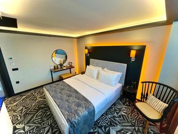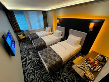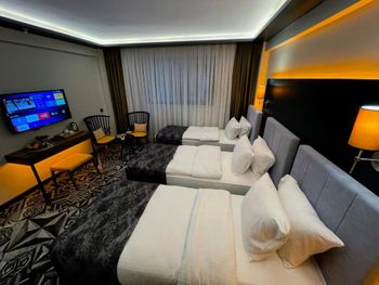 Это точно не 4 звезды!А 2-3 ! Ориентировалась на хорошие отзывы и очень сильно ошиблась.Я 6-ой раз в Стамбуле и это самый худший отель. Мы забронировали номер повышенного класса, отель подтвердил возможность, по приезду нам сказали, что номеров нет, заранее не предупредив (хотя в день прилета с нами связывался персонал и уточнял время прибытия). Персонал не решал проблему, вместо жалобной книги дали листочек А4.Посыл был простой: не нравится не заселяйтесь :) Никаких опций не предлагали, в итоге я согласилась на этот номер с оплатой по текущему тарифу, тк у нас не оставалось выбора тк мы мы приехали в отель в 23:00, а мы с маленьким ребенком искать другой отель уже не было сил. Моя бронь через букинг подразумевала скидки, тк забронированной категории номера не было пришлось оплачивать номер классом ниже по тарифу отеля (номер категории ниже по стоимости выходил дороже чем класса выше!) Номер очень маленький и тесный.Завтрак отвратительный, попадался несвежий сыр, не очень свежие овощи, если что-то закончилось не спешат приносить новое. Попросили гладильную доску, принесли все рванную и сломанную, погладить вещи было невозможно (это 4 звезды к слову). Не советую однозначно, даже на одну ночь. Такие проблемы возникали не только у нас, на ресепшн мы встретили несколько семей у которых была аналогичная ситуация с обманом с номерами.Подтверждали бронь, а по факту говорили, что номеров нет.