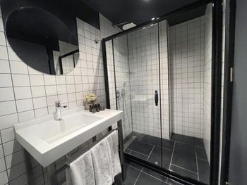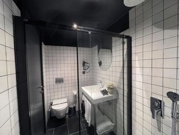 В номере отсутствуют базовые принадлежности для гигиены - это следует иметь в виду, если выбирать данный отель для размещения (не будет зубной щетки, зубной пасты, расчески, набора для бритья и т.п.). В санузле видимо был забит сливной трап душевого поддона - вода в душевой уходила достаточно медленно.