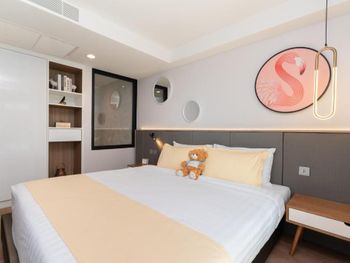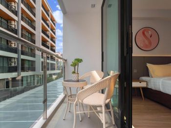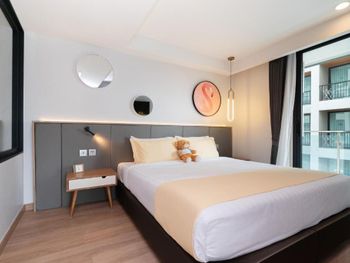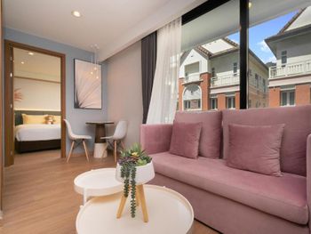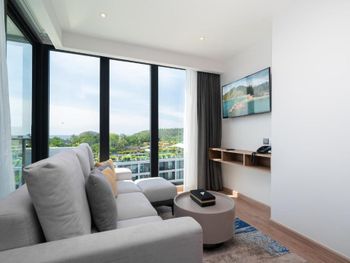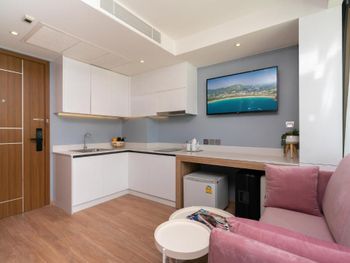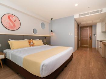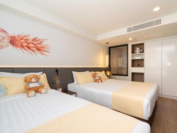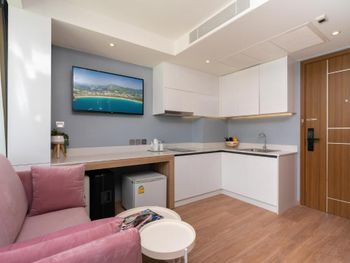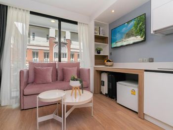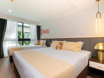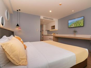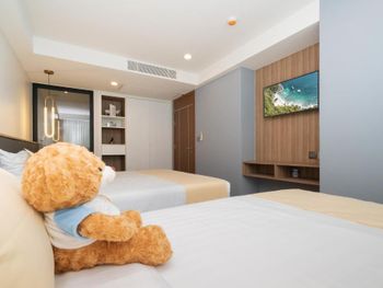 Очень новый отель, буквально пахнет ремонтом. Просторный светлый номер. Есть небольшая площадка, где можно поползать маленькому ребёнку. Отличная звукоизоляция, рядом с отелем расположена kata walking street с громкой музыкой, в номере ничего не слышно