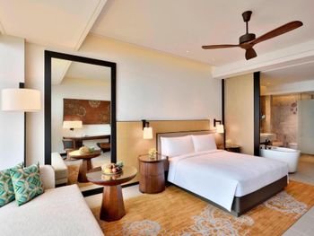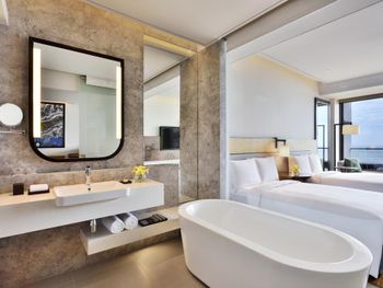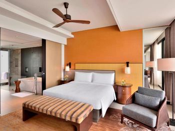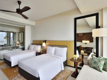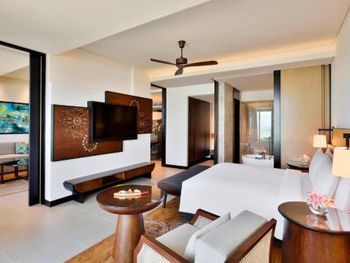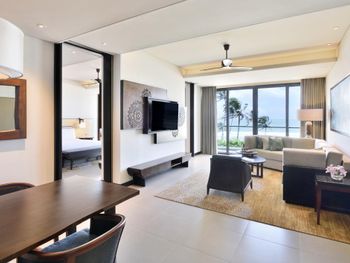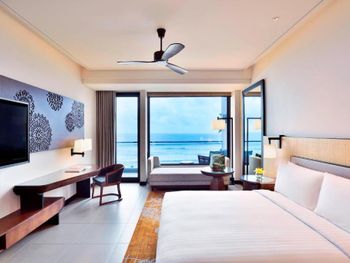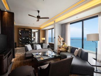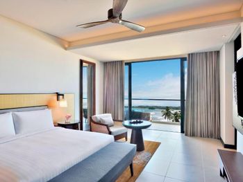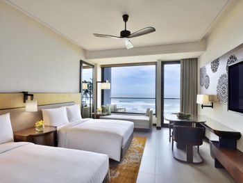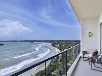 Проживали в номере сюит. Номер большой, с двумя балконами,  2мя санузлами, гостиная, спальня, панорамные окна в пол, площадью около 100 метров. Был предоставлен хостес, девушка с красивым именем Нишади, которая быстро решала любые вопросы (молодец, супер). По приезду попросили высокий этаж, но был свободен только второй (5 этаж от уровня земли),  через 2 дня переселили на 7-й этаж(10-й от уровня земли). Весь персонал вежливый, внимательный, улыбчивый, в принципе всё понимающий и понятно объяснщийся. Завтраки хорошие,  достаточный выбор блюд европейской, азиатской и ланкийской кухни. Ужин шведский стол тоже не плохой. Но очень понравился ресторан Big fish, морепродукты готовят очень вкусно, не сравнить с ресторанами на улице или в соседних отелях. Да, цена чуть выше процентов на 10-20, но посуда,  качество, подача, чистота и размер соответствует. На двоих , без напитков, в среднем около 70$ выходит.