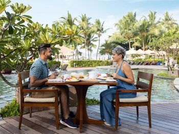 Прекрасное расположение, вкусная и разнообразная еда с европейской и индийской кухней, несколько ресторанов, личный менеджер, к которому можно обратиться с любым вопросом. Отзывчивый персонал, очень быстро реагируют на все запросы, всегда помогут найти свободный лежак, поменять полотенце или принести напитки и закуски из бара.
