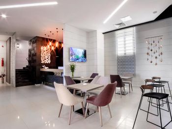 Современный интерьер, довольно чисто - уборка и замена полотенец каждый день, очень приветливый и любезный персонал, хороший завтрак, пляж близко (пляж не понравился), рядом есть продуктовый магазин, также очень близко детские аттракционы и набережная.