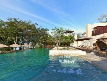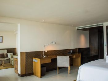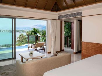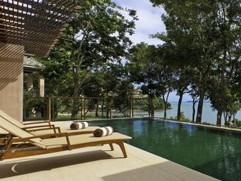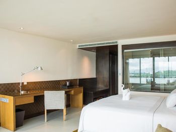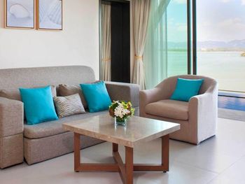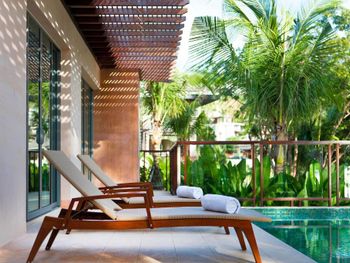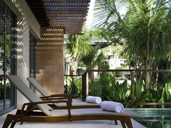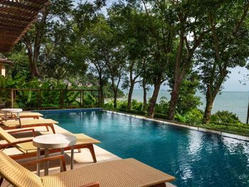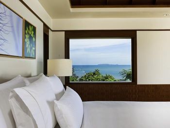 Этот отель просто баунти по тайски! Здесь огромная, очень ухоженная территория, ландшафт продуман так, что, за счет сложной системы зелени и архитекторы, тебе кажется будто ты тут один) даже в зоне общего бассейна получается атмосфера уединения. Местность холмистая и каскадная, территория очень большая, тут много лестниц и можно долго гулять или же вызвать водителя и прокатиться до нужной точки на гольфкаре ! Есть несколько ресторанов, предлагают экскурсии и трансфер ежедневно до города. Каждый день групповые тренировки. - Персонал супер, здесь просто идеальное обслуживание. Они даже привозили сами нам до номера доставку еды с кпп)) Кстати , расположение удобное, доступно много доставок еды, если не хотите кушать в ресторане отеля. Все супер вежливые и внимательные, англ знают все. Чемоданы твои принесут и унесут в номер, есть так же комната хранения багажа с отдельным сотрудником. - Номер идеальный, очень просторно, тихо и чисто. Никаких жучков не было. Уборка отличная. Кровати прям очень мягкие, как желе)) постельное белье чистое, ткань похожа на сатин. Халаты и полотенца - все белое, пушистое. В душе хороший слив, нагрев и напор, ни разу не было перепадов температуры. Никаких неприятных запахов. Кондиционер мощный! Нам еще подарили лавандовое масло для сна. Хороший интернет ( я работала удаленно - соединение стабильное). - Здесь 3 бассейна: первый на самой вершине, там вообще не было людей, очень тихо и спокойно, вид с вершины - потрясающий. Второй на середине холма около лобби, более популярный, чем остальные. Рядом росли деревья и в бассейне постоянно плавали цветы - это вау. А еще невероятный панорамный вид) Тут же есть бар прям в бассейне, можно кушать и пить. Третий небольшой у итальянского ресторана. - Завтрак просто восторог! Тут есть все!! Чтоб понять масштаб 5 видов сыра, фреш соки, красная рыба, овсяная каша))) есть бариста - сделают любые напитки) - Пляж небольшой, но уютный. Море без мусора, но цвет воды коричневый и не прозрачный, бегают крабики.