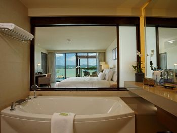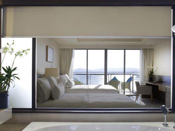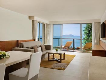 Через раздвижные стеклянные двери в современных номерах можно выйти на собственный балкон с зоной для отдыха на открытом воздухе и панорамным видом на море. Они оснащены телевизором с плоским 37-дюймовым экраном, док-станцией для iPod и DVD-плеером.
