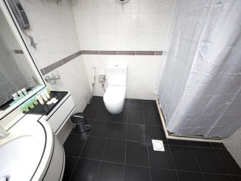 все. просто все ужасное. нет одноразовых тапочек. нет ванных принадлежностей. все сломанное и грязное. грязная посуда в номере от предыдущих жильцов. сломанная дверь.