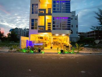 Совершенно внезапно удалось забронировать через букинг без списания денег с карты. Удивились. Но потом менеджер отеля написал, что ждет нас. Можно оплатить на месте. Успокоил. Заказал трансфер до отеля за 10$ и обратно нас отправили на такси. Все норм. Кроме того что пришлось в аэропорту просить служащего, чтоб позвонили в отель. За нами приехали. Долго жить в отеле конечно неинтересно. Но место чтобы переночевать перед вылетом, вполне сгодится.