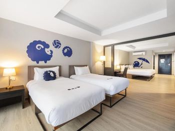 Только персонал и местоположение вывозит. Пляж через дорогу, магазин за углом, внизу 4 массажных салона, через дорогу стрит фуд. А теперь минусы… Если бы не карантин, поменяли бы отель, денег не жалко. Бассейн трагедия, но там никто и не купался особо, страшно войти в воду. Номера очень маленькие и темные, минибалкончики выходят на аллею из бесконечных кондиционеров и стен, канализацию и ещё что-то, это что-то очень сильно шумит 24/7… Кондиционер очень старый, шумный, неприятно пахнет, установлен прямо над постелью. А так как места постель двигать нет, то либо всю ночь на тебя дует вонючий воздух, либо умрешь от жары. Вариант открыть балкон приносит жесткий гул всего вышеперечисленного оркестра за окном. Розетки отваливаются от стен. Телик нам особо не интересен, но если кто-то хочет посмотреть, то картинка там как с антенной из 90х. Так, что там дальше… Вода из душа не уходит, об этом здесь уже писали. Но это ещё терпимо, можно и в лужице постоять. Уборщица куда-то пропала у нас и оставила нас в песке, без чистых полотенец и туалетной бумаги. Но это только последние пару дней. Так уборка была добросовестная. Может чего-то случилось у неё… Терпимо, конечно, для Тая норм. Но зачем, если можно лучше.