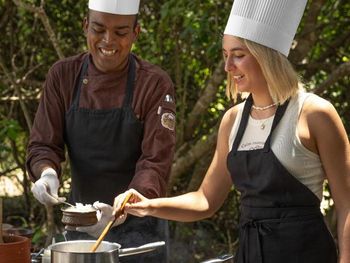 Вокруг плавательного бассейна свободной формы расположены бар Ten Tuskers с бамбуковыми стенами под открытым небом и ресторан Dining Pavilion. Гости могут отведать подлинные блюда ланкийской кухни из ежедневно меняющегося креативного меню в ресторане, а также заказать вечерние коктейли и устроить пикник на свежем воздухе на песчаных дюнах, наблюдая, как сумерки оседают над Индийским океаном. Кроме того, гости могут многое узнать о дикой природе в парке и посмотреть документальные фильмы в видео библиотеке.