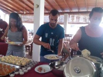 В стоимость номера входил завтрак, который подают на 2м этаже. Завтрак - разнообразие однообразия, и, для людей с неостровным ритмом жизни, безумно затяжное мероприятие. Но претензий к качеству еды ни разу не было, за исключением кофе (тут это не "он", а "оно"). Ножи принципиально кладут слева, а вилки справа (как ни пытались, ничего не поменялось). Ананасовые соки очень вкусные.