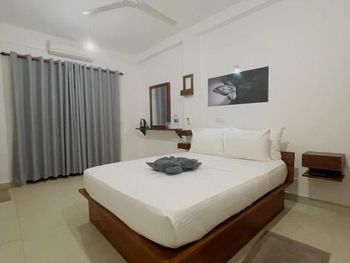 Единственный отель из восьми, которые мы посетили за поездку, который не потрудился купить генератор, электричество отключали 2 раза в день примерно по 2 часа каждый раз. При заселении в номер в холодильнике оказалась плесень и грязь-заменили. Обслуживающий персонал абсолютно бестолковый, как будто всегда в кумаре, убирали всего один раз за 5 дней-забыли грязное постельное бельё в шкафу с нашими чистыми вещами, лежало прямо сверху. Также при заселении в номер был заперт сейф, а чтобы его перепрограммировать было необходимо открыть - так и не открыли, не оказалось ключа. Телевизор включить было не возможно так как не было пульта, когда попросили принести пульт, нам принесли зачем-то ещё один роутер. Пароль от вай-фая дали правильный только с третьего раза. Завтраки отвратные-всегда один омлет без соли или пересоленный, несколько кусочков фруктов чашка кофе и тост с маслом и джемом и такое каждый день. И самое главное, пытались обмануть при выезде из отеля из-за чего опоздали на поезд в сторону аэропорта. Цена при бронировании через Booking была 275,4 долларов плюс сбор за обслуживание 28 долларов, когда я сказал что буду оплачивать картой и попросил точную сумму в рупиях, менеджер посчитал следующее - 275,4 долларов (стоимость номера) + 28 долларов (сбор за обслуживание) + 27,54 (проценты за оплату банковской картой) и далее самое интересное, он умножил всю эту сумму на 240 рупий за один доллар США, итого он насчитал 79 425 рупий. Тогда как официальный курс на 27.02.2022 г. был 202,01 рупии за один доллар США. Я ему показал официальный курс рупии к доллару на сегодняшний день, благо интернет под рукой и сказал, что если я оплачу это картой, то после конвертации у меня будет списано примерно 390 долларов, так как конвертация будет проходить по официальному курсу, на что менеджер мне ответил что это частный отель и повсюду на пляже доллар продаётся по 240 + рупий.