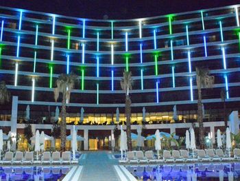 В информации на Букинг.ком указано, что отель находится на первой линии. Но он находится не на первой линии, а за Туристическим проспектом Лары, в 10 минутах ходьбы от пляжа. Пожалуй, отелю стоит отказаться от практики заштопывания порванных простыней, и просто их выбрасывать. Пять звёзд всё-таки. График выдачи и обмена пляжных полотенец я бы тоже изменил, время неудобное. Утром открывается поздновато, а вечером полотенца можно только сдать, но не обменять. В отеле нет ни одной гладильной комнаты. Достал рубашку из чемодана, а погладить её негде. Хоть с собой утюг бери, нарушая противопожарные правила.
