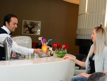 В первую очередь, я бы хотела отметить сотрудников данного отеля. Альфия очень компетентный сотрудник, а также она доброжелательная и сделала наш отдых на все 100%. Аниматоры в отеле, как и весь другой персонал крайне приятный и приветливый. Каждый день проходит по несколько программ у бассейна (йога, зумба, игры в бассейне, дартс и т.д). К тому же, вечером проходит мини-диско для детей, а после неё вечерняя шоу-программа. Еда была разнообразная и вкусная. В нашем номере убирались ежедневно. Возле отеля находится несколько аптек и магазинов. До моря можно добраться на автобусе от отеля (3 минуты) / лодке (5 минут) / пешком (7-10 минут). На территории пляжа находится ресторан и бар. Вдобавок, у бассейна вы тоже можете перекусить.