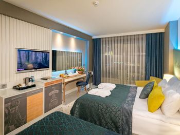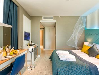 Отличный отель) была интересная развлекательная программа. Вкусная и разнообразная еду, приветливый персонал. Во всех номерах одна двухспальная кровать и одна односпальная.
