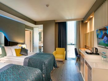 Среди прочих удобств — частный пляж, прокат автомобилей и инфраструктура для занятий водными видами спорта. В отеле можно сыграть в настольный теннис, бильярд и дартс. Расстояние до аэропорта Анталии составляет 14 км.