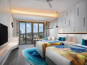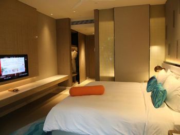 Отличный отель. Расположен на любителя. Если вам нужен пляж каждый день, лучше посмотреть другой отель. Расположен рядом с парком "Олень повернул голову" можно конечно дойти пешком, но летом в жару мы предпочли такси. Персонал всегда его вам вызовет. Вообще практически всегда ездели на такси, здесь на него вполне адекватные цены.Мы отдавали им наличку на ресепшене. Путешествовали самостоятельно и по приезду в аэропорт от незнания сели к таксистам, которые предложили нам довести до отеля за 200 юаней. В приложении заказа такси поездка обойдется максимум в 70-85 юаней до отеля. От пляжа далековато. Но мы на него особо и не ходили. Есть трансфер в 10,12,16:00. До основных достопримечательностей тоже на такси. Они в разных точках. Номер большой, убирались каждый день даже если не просили)) щетки тапки, и пр. добавляли каждый день. Мы пользовались ещё стиральной и сушильной машиной, каждая по 20ю. Вода в маленьких бутылочках бесплатная, в больших по 5 юаней, при выезде отдали 15ю)) Завтраки вполне нормальные, как и во всем Китае не привычные для российского желудка, и глаза, но мы всегда находили что поесть. И проблем с пищеварением не было. Бывает что много народа на завтраке, но столики всегда были, приходили обычно уже после 9:00. Бассейн тоже отличный. Первый день по приезду было грязное дно, его чистили пылесосом. Видимо был ветер сильный или дожди, не пускали в него. Есть небольшой бассейн с рыбками, которые кушают ороговевшую кожу. Они были очень голодные или педикюр был несвежим, накинулись щекотать))) потом конечно привыкаешь. Для детей есть отдельный бассейн с горкой и даже вроде пенную вечеринку им устраивали каждый день. А в целом за такие деньги просто отличный отель!!!