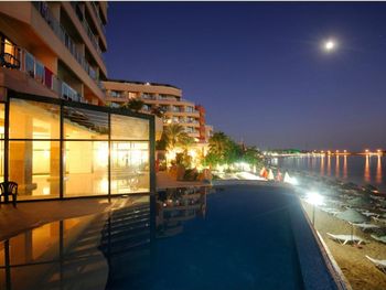 Хороший пляж с песком, мелко у берега- довольно широкая мелкая полоса, не волнуешься за ребёнка, когда он там плещется. Хорошая еда, достаточно мест в ресторане. Очень старается команда аниматоров. В целом, Отель понравился.