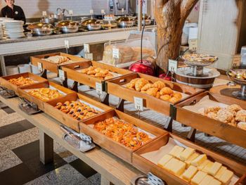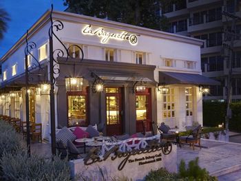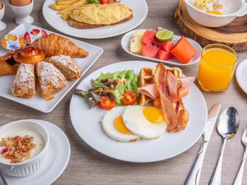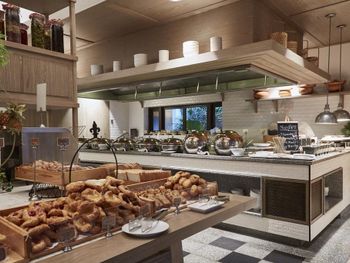 Ежедневно в кафе Garden сервируют ежедневный завтрак «шведский стол», а по субботам — интернациональный «шведский стол» с живой музыкой. Во французской булочной La Baguette можно заказать свежие пирожные и кофе, а в ресторане La Ferme — различные блюда французской, бельгийской и тайской кухни.