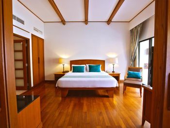 Цены в отеле перегреты(за завтраки-по520 бат!,пицца -500 бат,пиво-130 и т.д.),шумные вытяжки у каждого номера(как будто ты на подстанции!)-правда при закрытой двери тихо,телевизоры в номерах не SMART(Youtube не посмотришь!),до моря идти почти 1 км,да и моря там нет-одни камни!