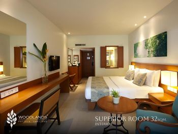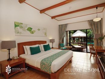 Из окон оформленных в современном стиле номеров курортного отеля Woodlands открывается вид на сад или бассейн. Все номера располагают собственным балконом или патио, а также кондиционером, спутниковым телевидением, мини-баром и персональным медиа-центром.