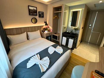 Это милый маленький отель. Вполне свежий. Очевидно, есть намерение выжить в бизнесе и закрепиться. Поэтому, персонал демонстрирует старательность и доброе расположение к клиентам. Кроме этого, локация. Она чрезвычайно выгодна во многих отношениях: от возможности строить оптимальный пешеходный маршрут до возможности независимой остановки такси. В номерах есть вода для питья, что можно только приветствовать. Матрасы удобные. Вы сможете отдохнуть во время сна, если, конечно, все три ночи в соседнем номере не будет плакать ребенок. Слышимость абсолютная!